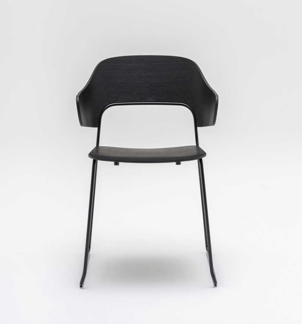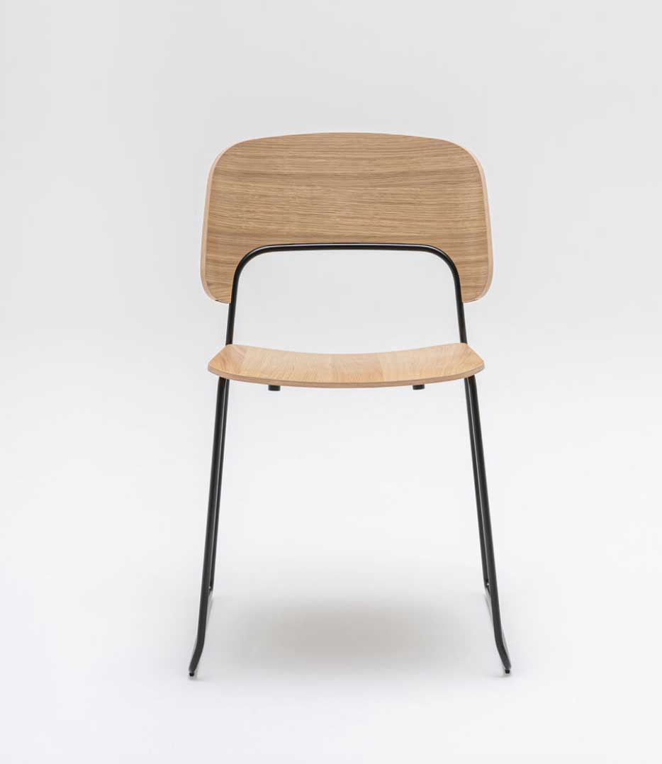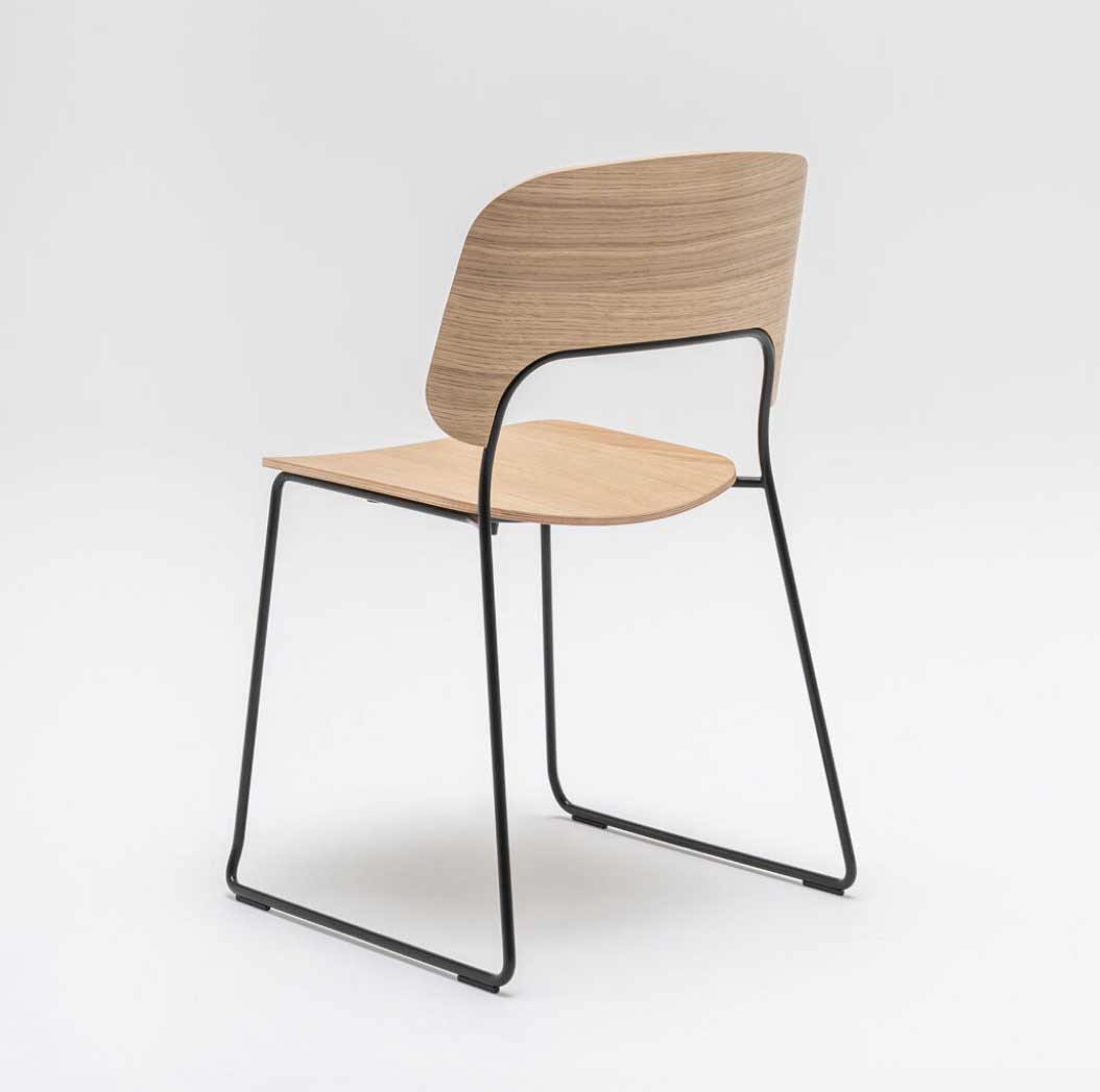 Assise: Contre-plaqué 10mm, Dossier: Contre-plaqué 11 mm, Piétement traineau: Tube métal D12mm finition laqué époxy, Patins polypropylène noirs