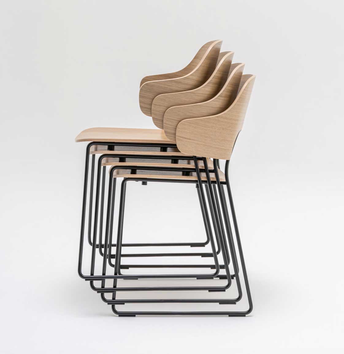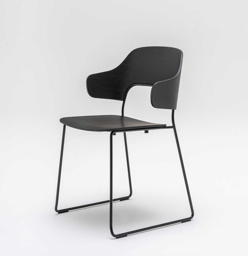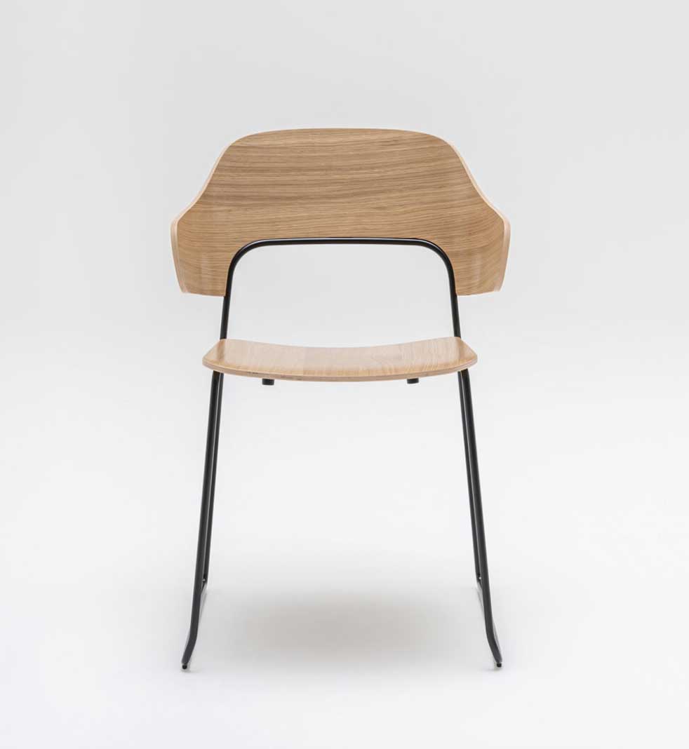 Assise: Contre-plaqué 10mm, Dossier: Contre-plaqué 11 mm, Piétement traineau: Tube métal D12mm finition laqué époxy, Patins polypropylène noirs