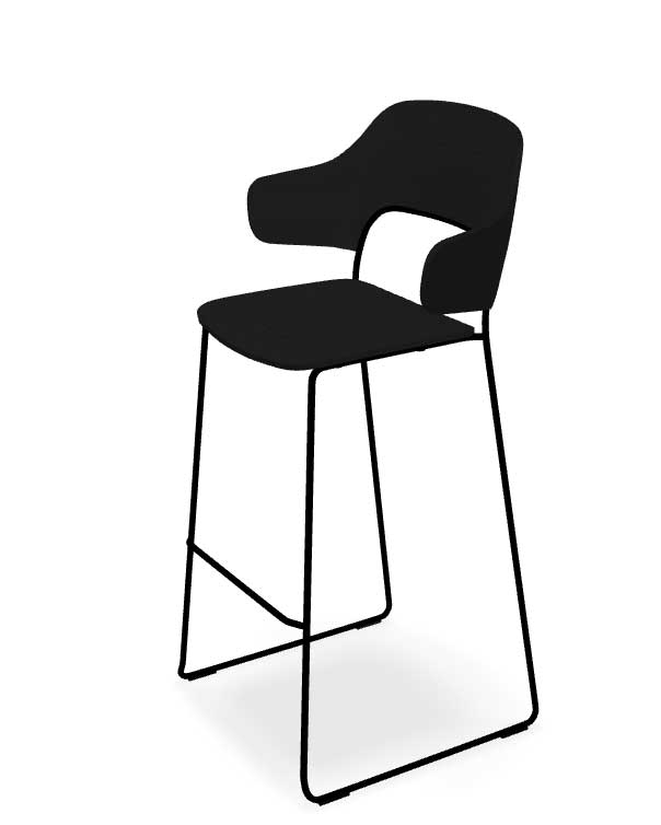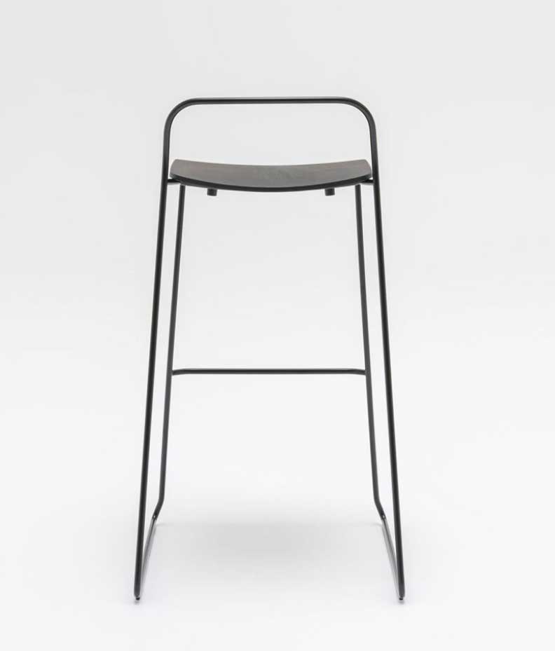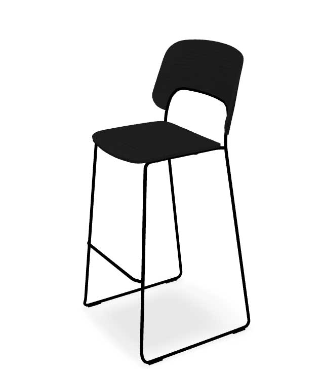 Assise: Contre-plaqué 10mm, Dossier: Contre-plaqué 11 mm, Piétement traineau: Tube métal D12mm finition laqué époxy, Patins polypropylène noirs