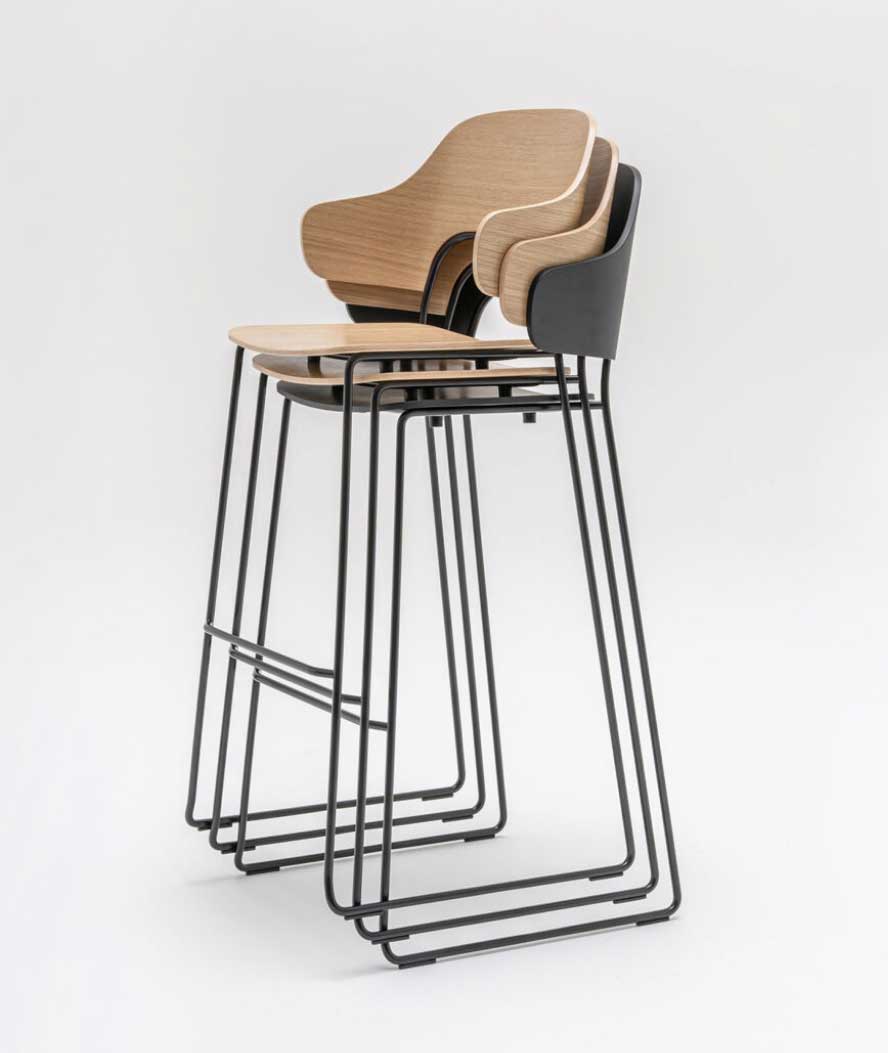 Afi Mdd / Tabouret haut en bois Inspiré du design scandinave, le tabouret en bois Alfi conà§u par le fabricant Mdd, réputé pour la qualité de son mobilier design, présente des lignes élégantes et raffinées. Le tabouret haut Alfi s´adapte aisément à touts types d´environnement modernes ou classiques, professionnels ou privés. Le tabouret Alfi Mdd existe en 3 versions empilables. La version sans dossier haut plus épurée avec dosseret métal faisant partie intégrante de la structure. La version avec dossier haut sans accoudoirs et la version avec dossier haut avec accoudoirs. L´ensemble dispose d´un repose-pied trà¨s fonctionnel. Composé d´une structure en métal laqué époxy et d´une assise en contreplaqué de couleur chàªne naturel ou chàªne noir. Le tabouret en bois alfi est parfaitement adapté pour les cafétérias, les restaurants mais aussi pour les espaces de réunion avec tables hautes.