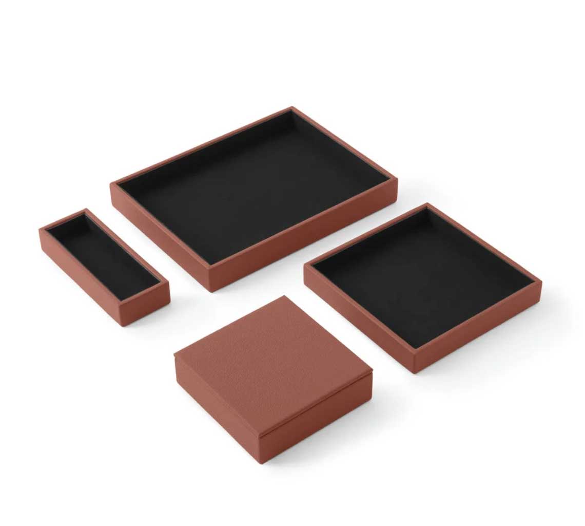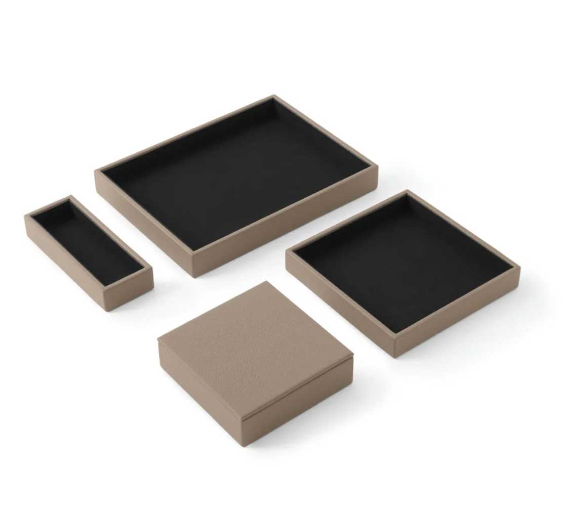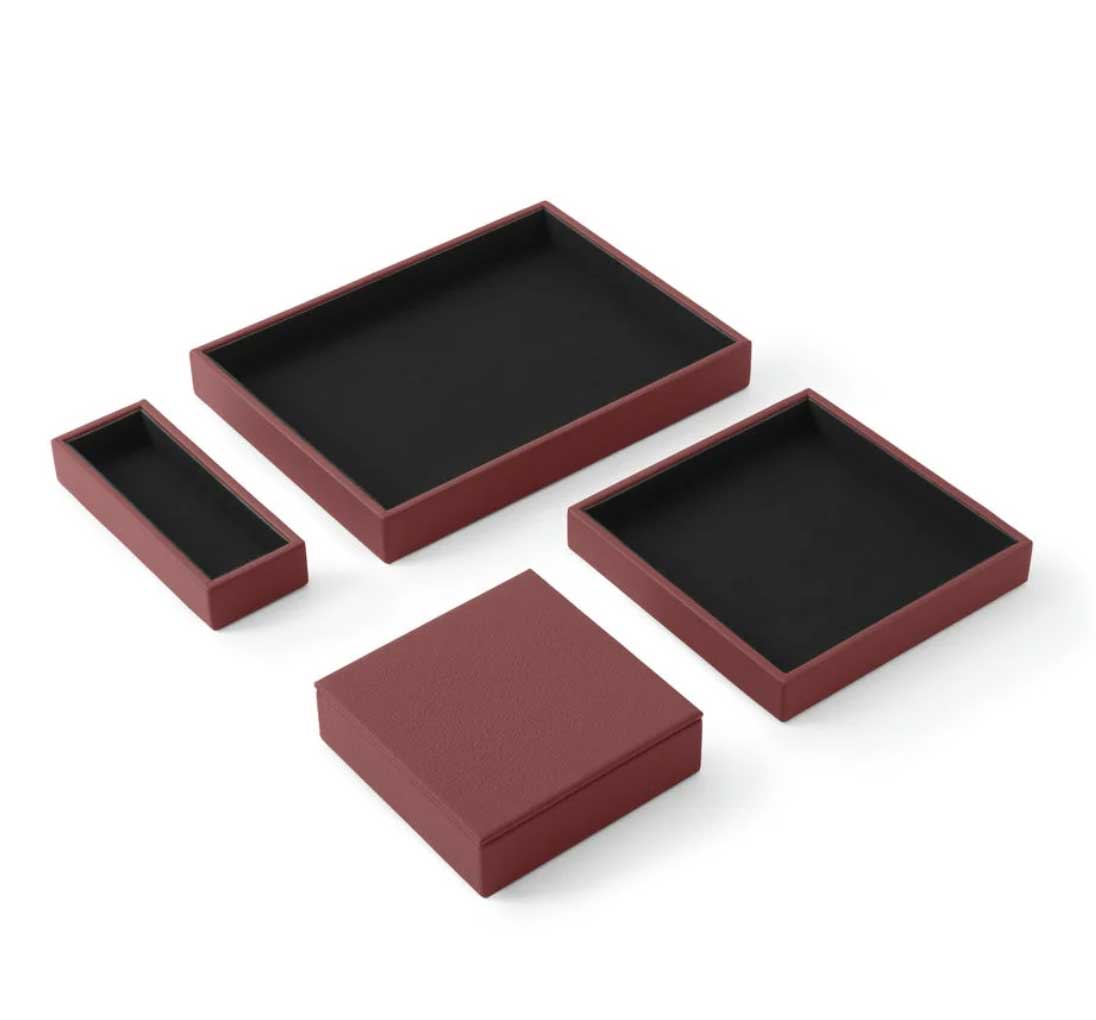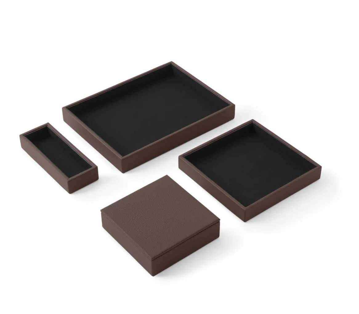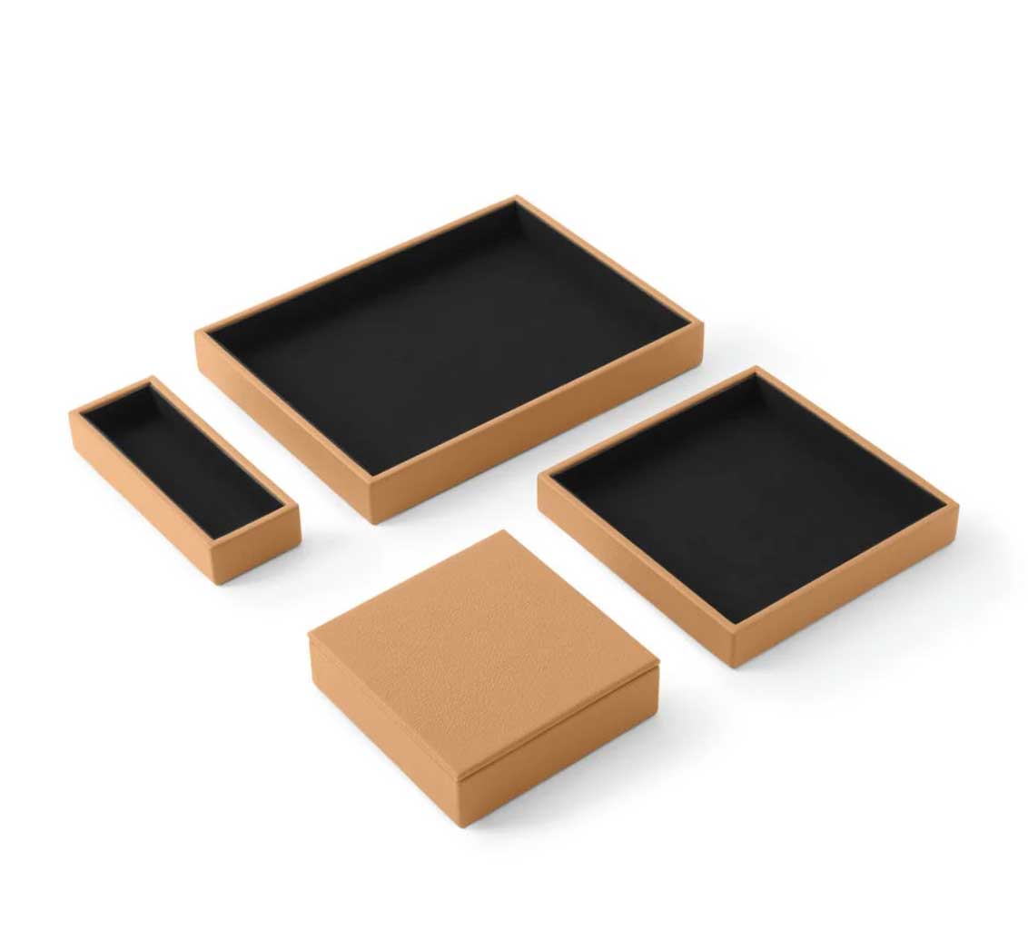 Le Set de réception comprend une Boîte à stylos, plateau valet avec couvercle, grand plateau valet, petit plateau valet.