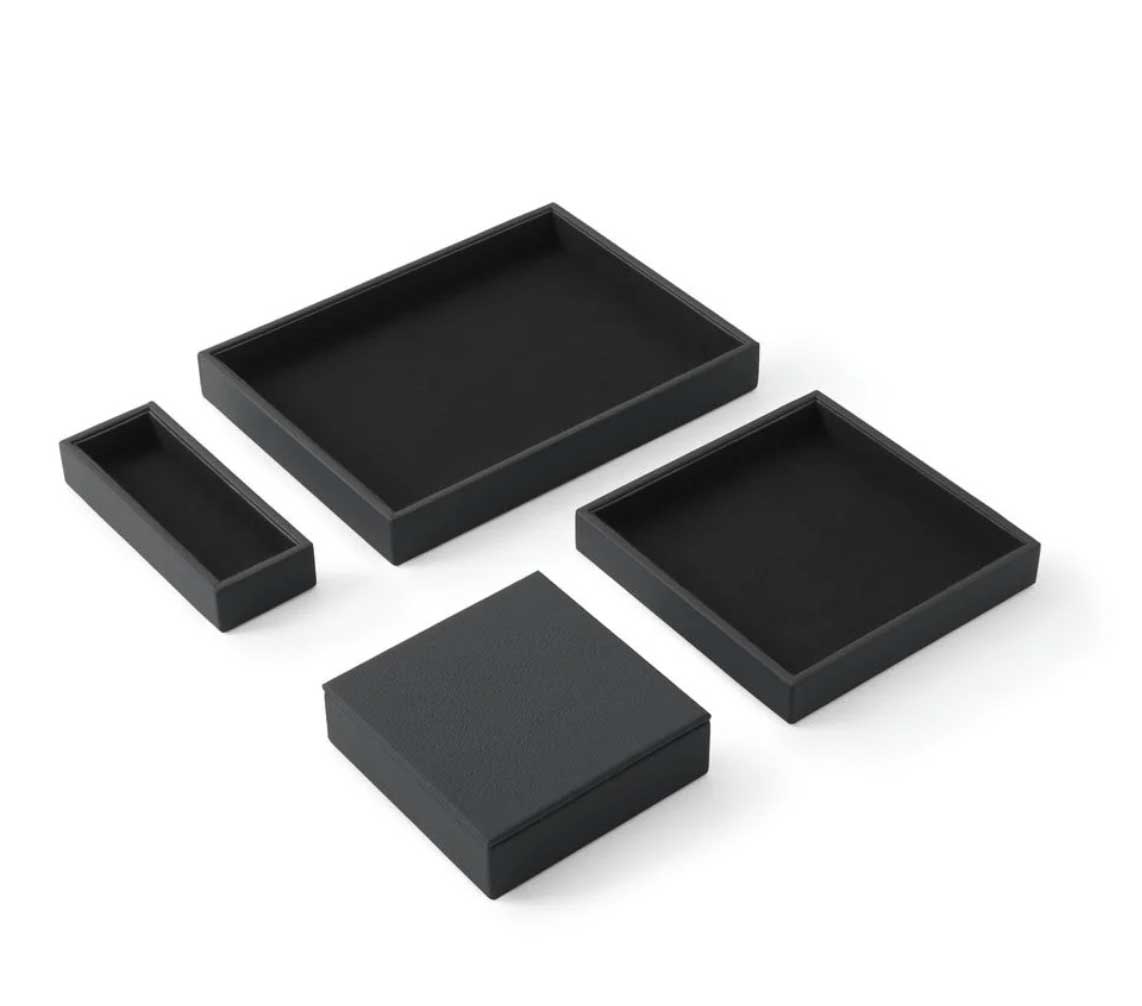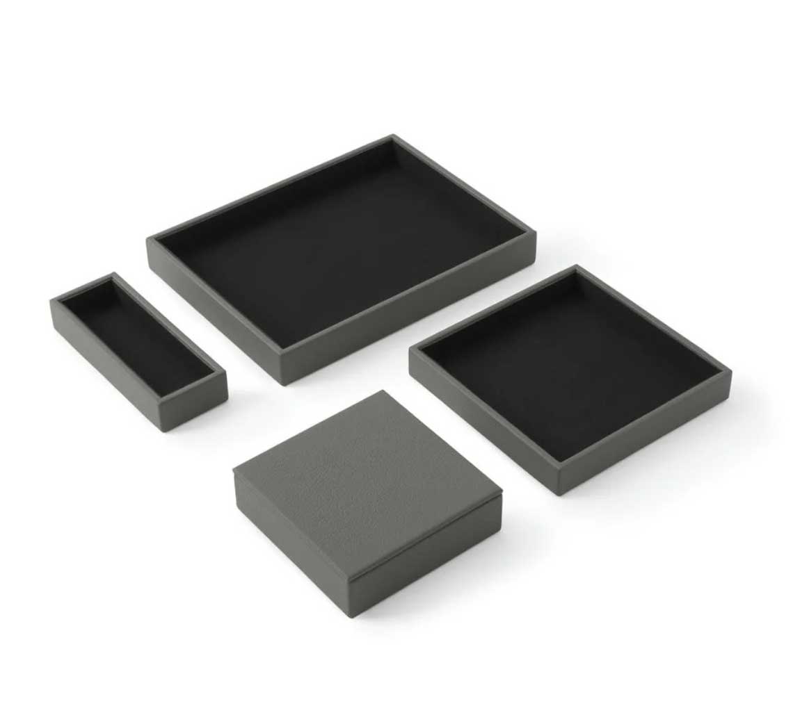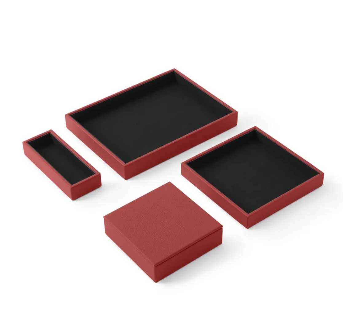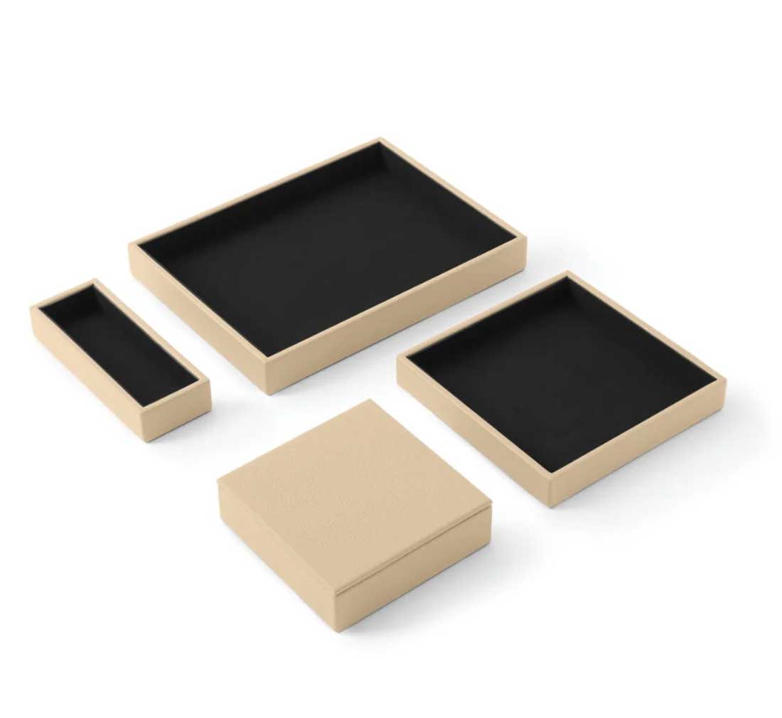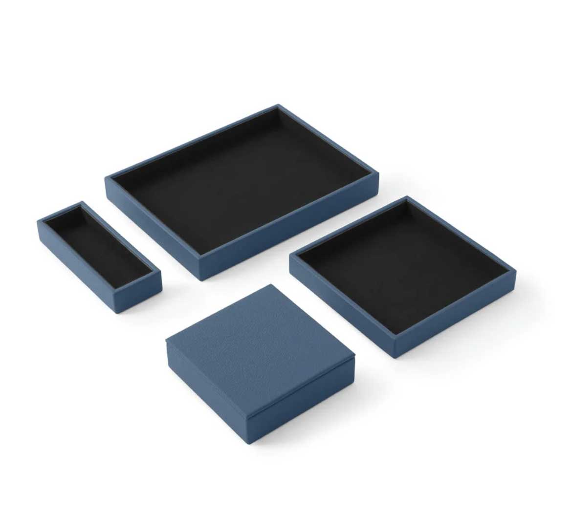 Le Set de réception comprend une Boîte à stylos, plateau valet avec couvercle, grand plateau valet, petit plateau valet.