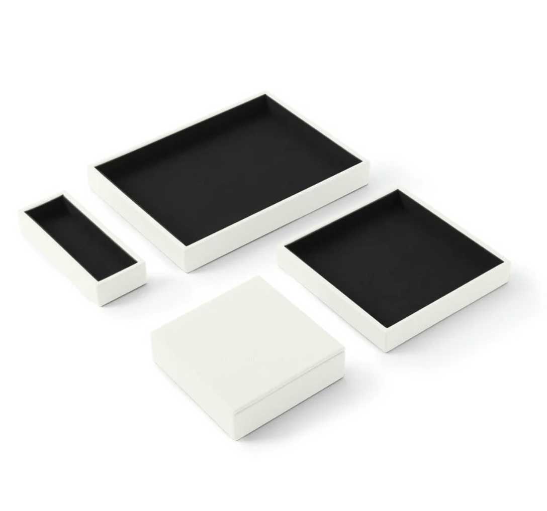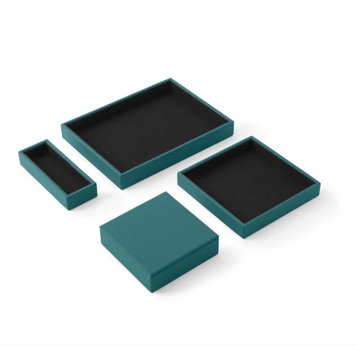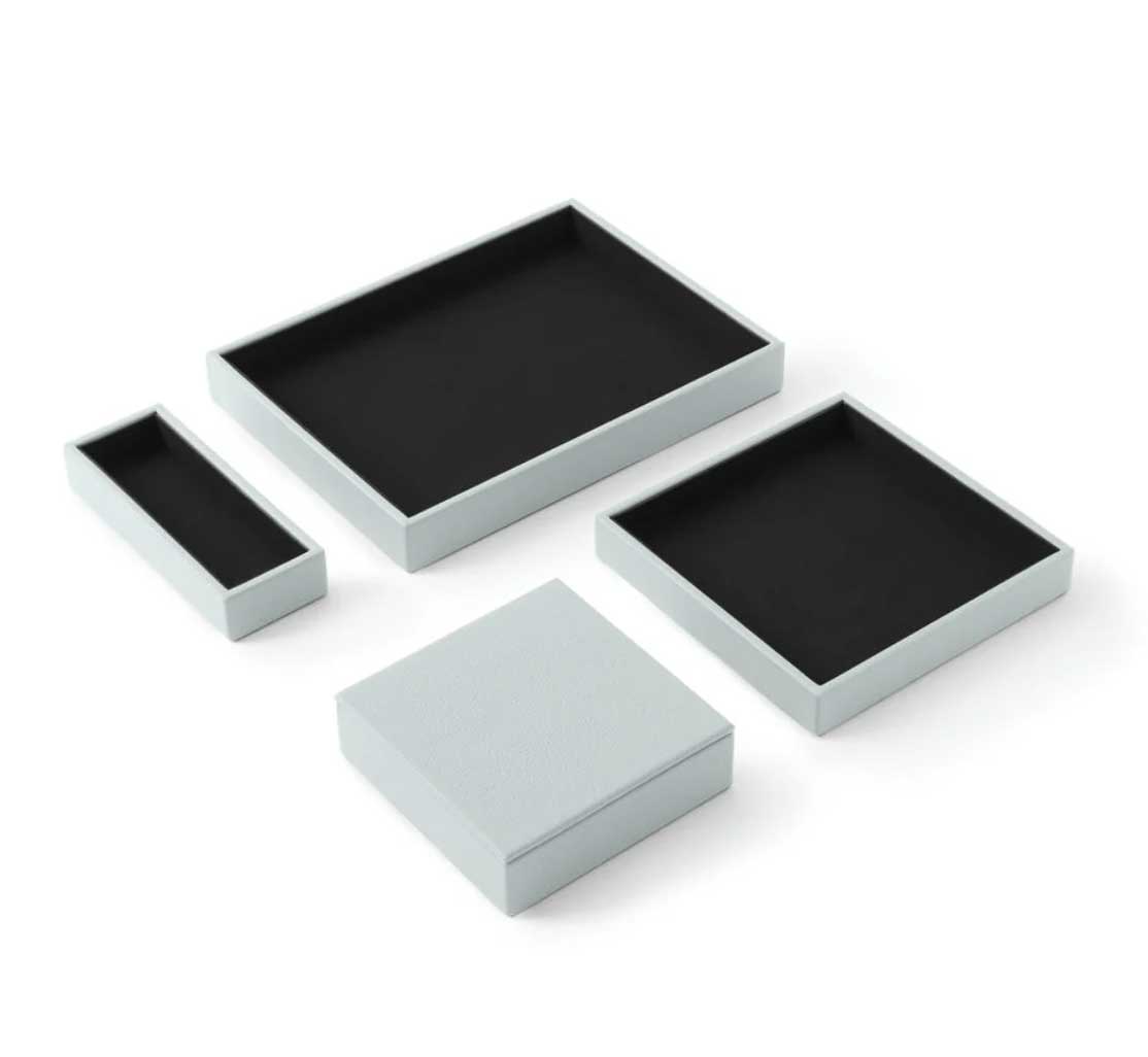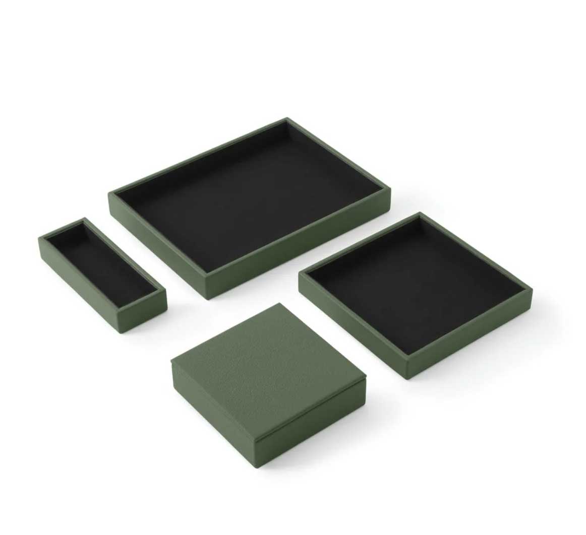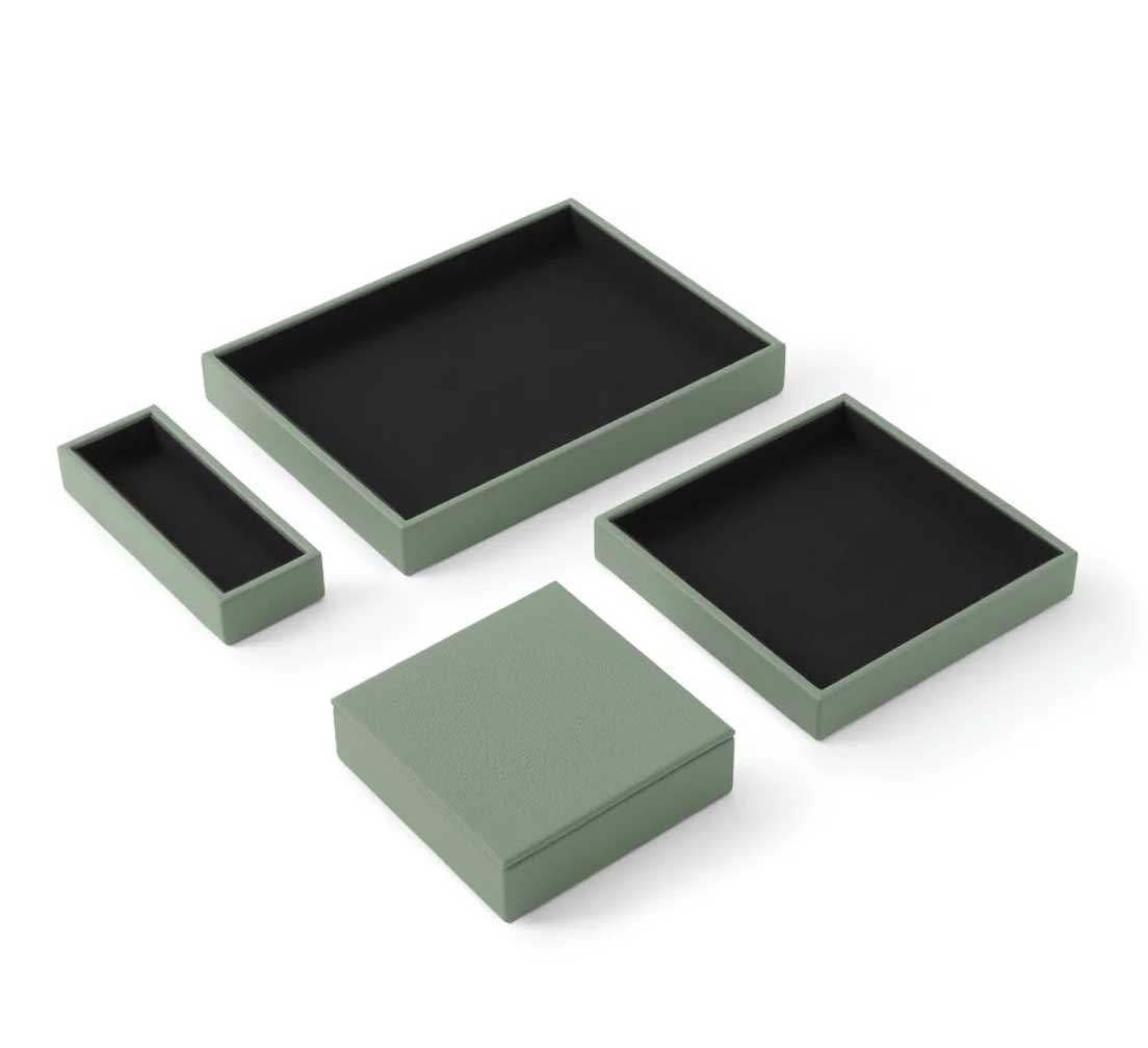 Le Set de réception comprend une Boîte à stylos, plateau valet avec couvercle, grand plateau valet, petit plateau valet.