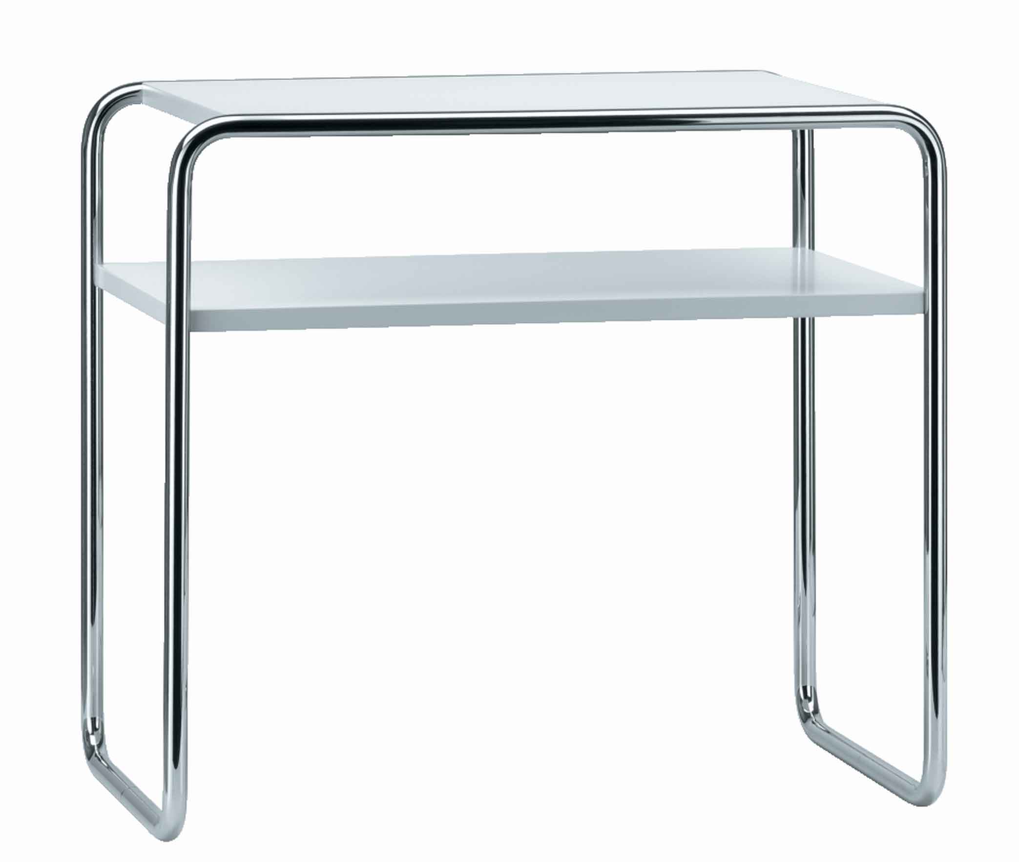 B 9 d/1 Table d’appoint L66 cm Marcel Breuer Blanc Créées en 1925/26 par Marcel Breuer les élégantes tables d’appoint en acier tubulaire B 9 sont devenues au fil du temps de grands classiques design. Durant sa période au Bauhaus, le célà¨bre designer et architecte Marcel Breuer expérimente avec l’acier tubulaire, transposant ainsi les principes de construction des meubles en bois à ce nouveau matériau. Les premià¨res créations de Marcel Breuer comprendront les tables gigognes B 9 ainsi que différents systà¨mes de rayonnage et meubles d’appoint assortis. De part leur design atemporel et leur grande élégance, les tables gigognes et tables d’appoint B 9 trouvent leur place dans les espaces privés et les espaces collectifs. Vous pourrez les disposer aisément dans une salle d’attente, un bureau ou un salon. Les tables d’appoint B 9 de Thonet sont disponibles en 4 dimensions (modà¨les B 9 a à d) et sont vendues à l’unité ou par set de 4 tables gigognes. Le modà¨le B d/1 quant à lui dispose d’un plateau intermédiaire trà¨s fonctionnel.