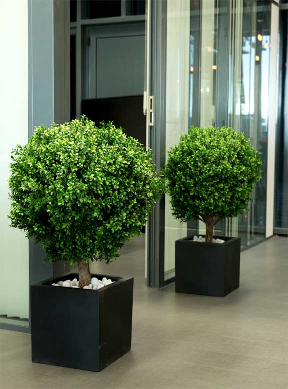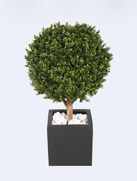 Buis Tanaman / Plante artificielle décorative H105 cm Plus vrai que nature ce buis artificiel est composé de bois et de feuilles en polyéthylà¨ne recyclé de trà¨s belle qualité. Cette plante artificielle est empotée dans un superbe pot carré en fiberstone noir mat. Le fiberstone est un assemblage de fibres de verre et de poudre de pierre. La base de cette plante décorative est également habillée de petits galets blancs trà¨s esthétiques. Conà§ue par la marque franà§aise Tanaman, cette plante artificielle est idéale pour décorer un bureau, un open space, une salle d´attente d´accueil, une cafétéria ou un espace détente. Cet arbuste artificiel décoratif d´un trà¨s beau rendu apportera indéniablement une véritable touche de nature et de convivialité à votre espace de vie.