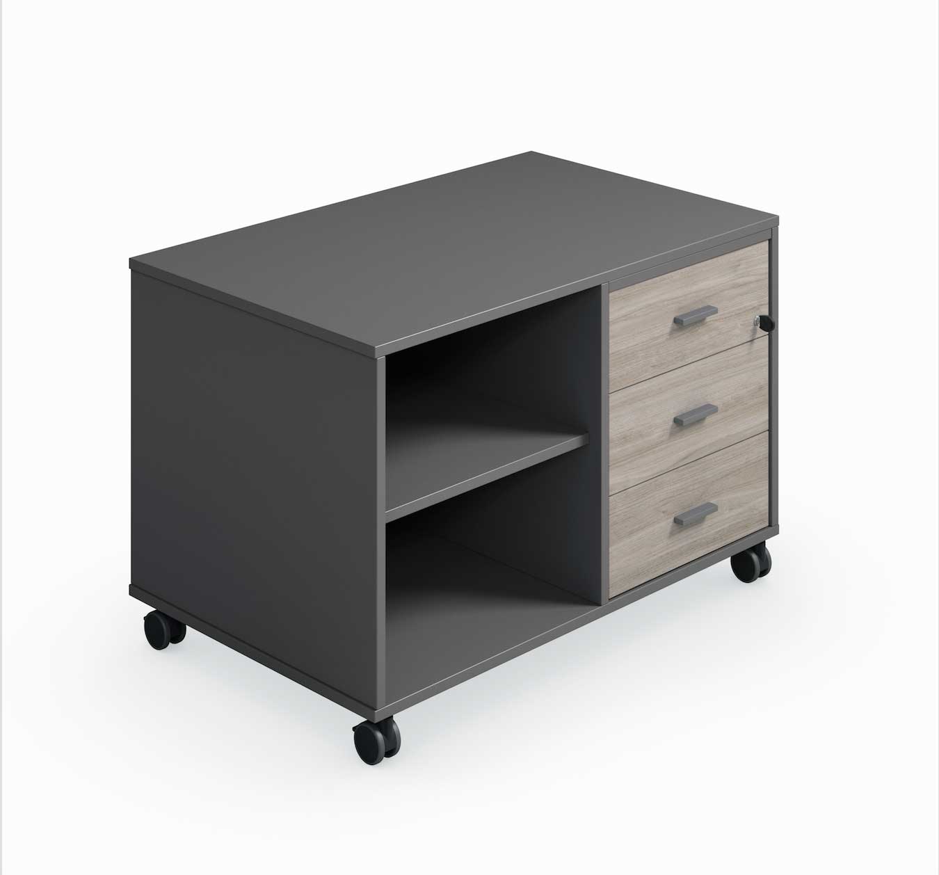 Ce rangement de bureau bas offre une surface de travail d’appoint idéale pour consultation de documents, positionnement d’imprimantes ou création d’un poste de travail nomade.