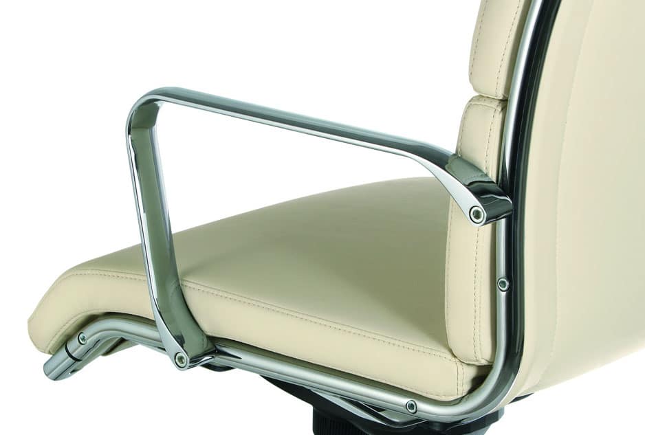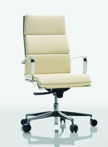 Dekora plus Fauteuil de direction en cuir crà¨me Le fauteuil de direction Dekora Plus, doté d’une structure en acier chromé, possà¨de un dossier et une assise rembourrée revàªtue de cuir de trà¨s belle qualité. Le fauteuil de direction Dekora Plus, édité par la marque italienne Offisit, est réglable en hauteur, sa hauteur d’assise peut varier de 41 à 49 cm. Le fauteuil de direction avec dossier haut Dekora Plus est équipé d’un mécanisme basculant avec axe décentré. Ce fauteuil de direction aux lignes équilibrées possà¨de également des accoudoirs fixes en aluminium chromé. La structure légà¨re et épurée de ce sià¨ge de direction lui permet de s’intégrer avec tous types de bureau et vous accompagnera au quotidien avec une réelle efficacité et un grand confort d’assise.