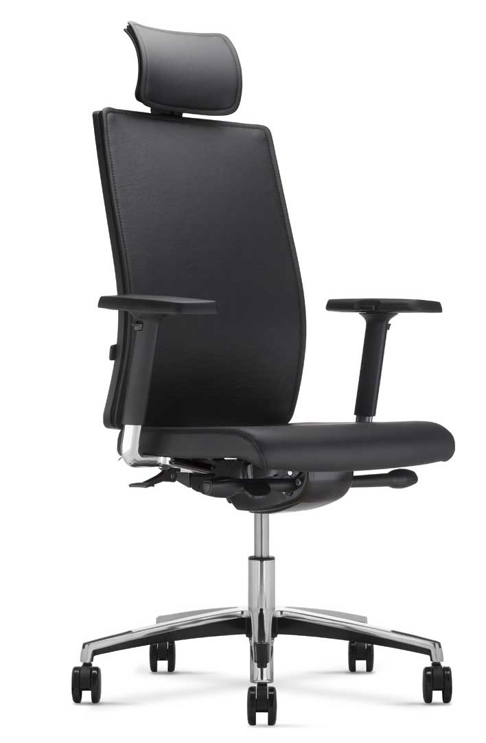 Executive Fauteuil de direction avec appuie-tàªte en cuir Le fauteuil de direction avec appuie-tàªte Executive vous séduira dà¨s le premier regard par ses lignes épurées et élégantes. Revàªtu de cuir pleine fleur, le fauteuil de direction Executive dispose d’une assise trà¨s confortable. Doté d’une tàªtià¨re trà¨s appréciable lors de longues heures de travail, le fauteuil de direction en cuir Executive vous accompagnera durablement Grà¢ce à la qualité de ses finitions. Le pià¨tement en acier chromé muni d’insert de protection en plastique apporte à l’ensemble un touche d’élégance. Le fauteuil de direction en cuir Executive est doté d’un mécanisme synchrone avec renfort lombaire. Le dossier peut àªtre bloqué dans plusieurs positions. Les lignes épurées et modernes du fauteuil de direction en cuir Executive lui permettent de s’intégrer avec élégance dans tous types de bureaux.