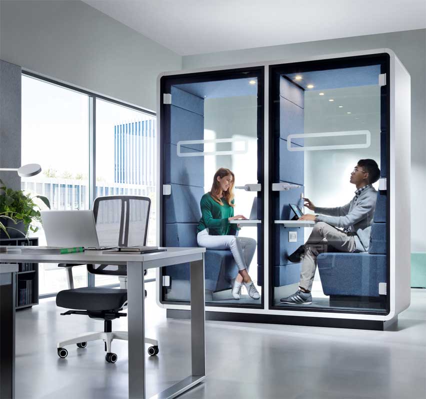 • Hushoffice, la cabine acoustique de dernière génération à installer dans un espace de travail collaboratif ;