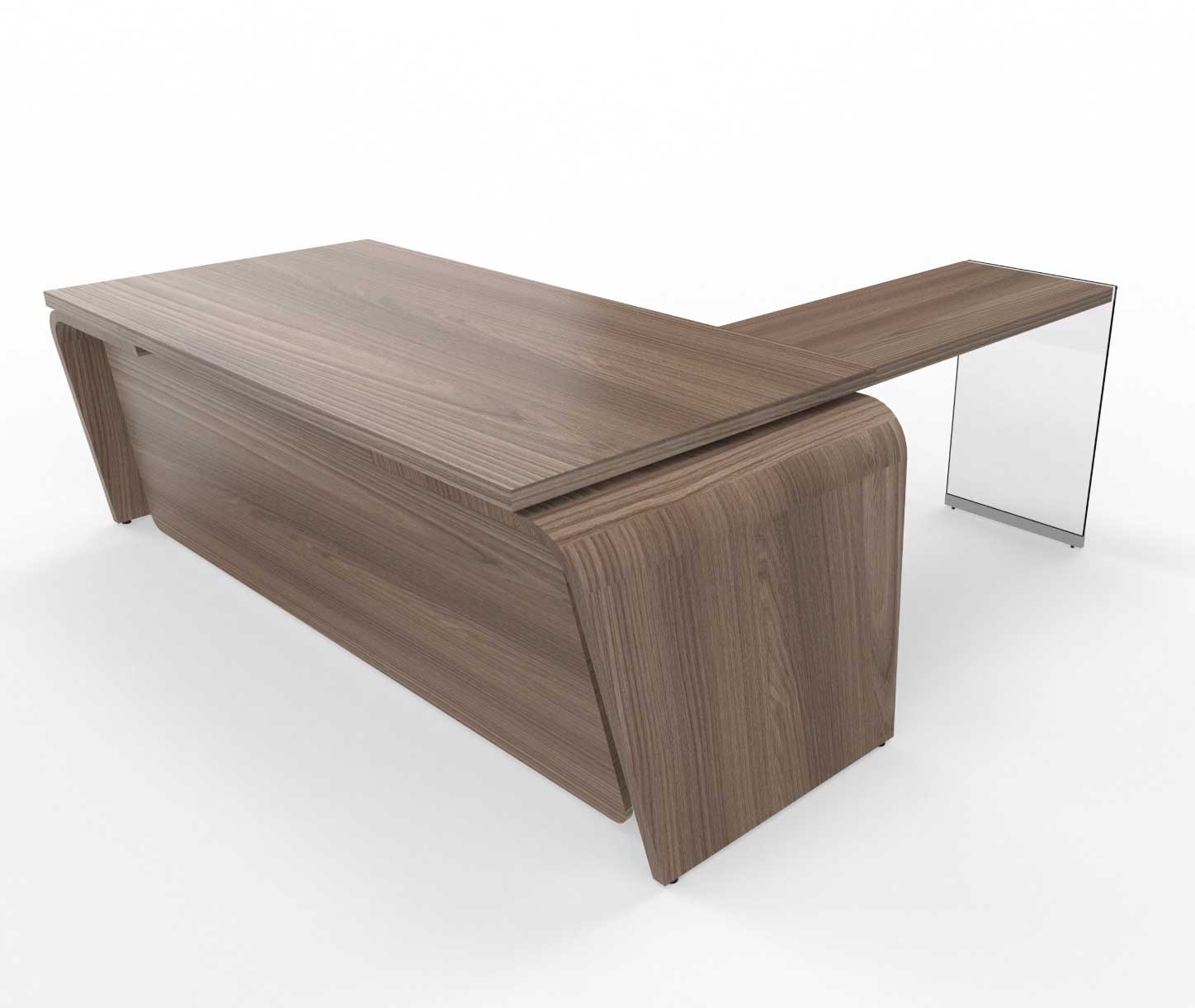 Retour pour bureau Larus L100 x 45 cm avec plateau en bois et pied en verre