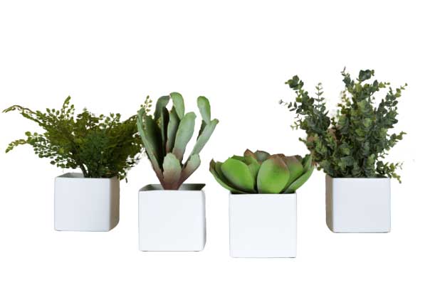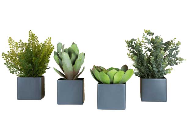 Lot de 4 pots carrés Tanaman / Plantes artificielles décoratives Ces petites plantes artificielles au rendu plus vrai que nature sont idéales pour décorer vos bureaux et vos tables. Faciles à déplacer vous pourrez aisément embellir votre table de réunion, votre table de cafétéria ou votre banque d´accueil. Réalisé en polyéthylà¨ne recyclé et en tergal, chaque plante artificielle est empotée dans un pot en céramique. Fabriqué par la marque franà§aise Tanaman, réputée pour la qualité et l´esthétique de ses plantes artificielles décoratives, les petites plantes d´intérieur apporteront une touche de couleur et de convivialité à votre environnement de travail.