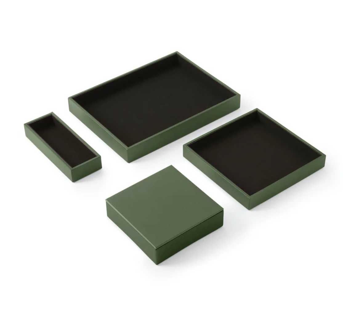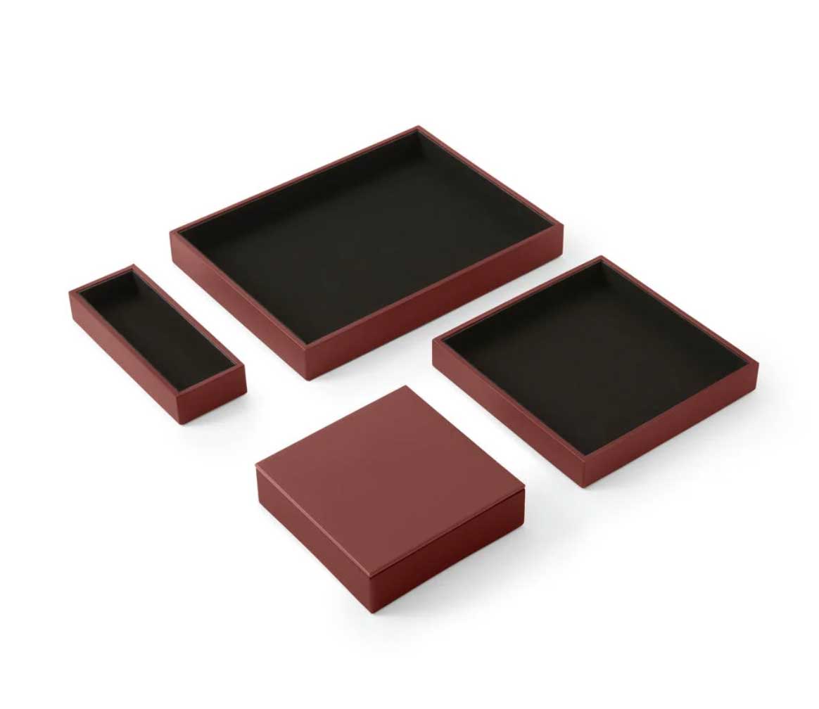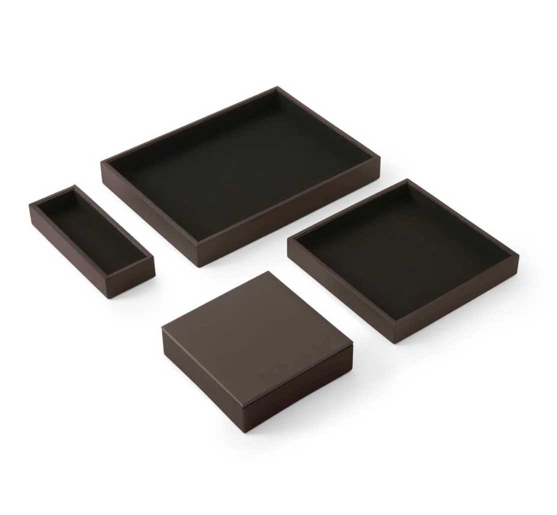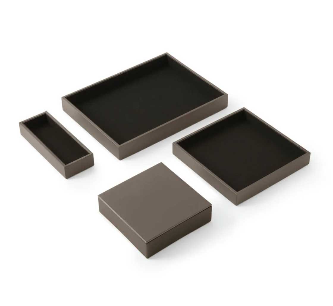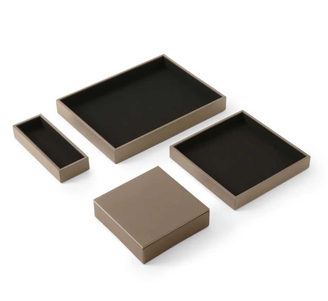 Le Set de bureau Minerva de la marque italienne Eglooh incarne le raffinement et la qualité artisanale à travers des accessoires conà§us pour allier esthétique et fonctionnalité. Idéal pour les environnements professionnels, ce set élégant s´impose comme un indispensable pour une organisation soignée et un décor sophistiqué. Entià¨rement fabriqué à la main en Italie, il est conà§u pour offrir une expérience visuelle et tactile inégalée. Un design carré et raffiné pour un bureau moderne Le Set de bureau Minerva comprend quatre pià¨ces essentielles : une boà®te à stylos, un plateau valet avec couvercle, un grand plateau valet et un plateau classique. Chaque élément de ce set présente des lignes épurées et une forme carrée qui confà¨rent une touche contemporaine à votre espace de travail. Que ce soit pour organiser votre bureau ou apporter une note de distinction à une table de réunion, ce set se distingue par son design intemporel et sa capacité à se fondre dans tous types d´environnement, des plus modernes aux plus traditionnels. Des matériaux de qualité supérieure pour une durabilité optimale Les matériaux utilisés pour la fabrication du Set Minerva sont à la hauteur de sa réputation. La surface externe est en cuir reconstitué, un matériau à la fois élégant et facile à entretenir, offrant une grande résistance à l´usure. Le cuir reconstitué est également connu pour sa texture agréable et sa capacité à maintenir un aspect neuf pendant longtemps, màªme en usage intensif. à€ l´intérieur, chaque pià¨ce est recouverte de microfibre douce, offrant une sensation agréable au toucher et protégeant vos objets de la poussià¨re et des rayures. La structure interne des accessoires est réalisée en matériau cellulosique, garantissant une solidité exceptionnelle et une longue durée de vie. Organisation optimale et praticité au quotidien Le Set de réception Minerva est pensé pour améliorer l´organisation de votre espace tout en préservant l´esthétique. La boà®te à stylos, mesurant 20 x 7,5 cm, est idéale pour ranger stylos, crayons et autres accessoires de bureau de manià¨re élégante. Le plateau valet avec couvercle (16,5 x 16,5 cm) se distingue par son couvercle pratique, permettant de conserver vos objets personnels en toute discrétion, comme une montre, des clés ou des bijoux, sans compromettre le style de votre bureau. Le grand plateau valet (21,5 x 21,5 cm) permet de ranger des accessoires plus volumineux, tels que des cà¢bles, des écouteurs, du maquillage ou des documents importants, tout en gardant l´espace bien ordonné. Enfin, le plateau classique (32 x 24,2 cm) est parfait pour organiser des objets plus larges comme des lunettes, des bouteilles d´eau, des tasses à café ou des snacks lors de réunions. Un accessoire de bureau polyvalent et chic Ce set Minerva ne se limite pas à l´organisation de bureaux, mais s´étend également à des espaces tels que les salles de réunion, les comptoirs de réception, les tables basses dans les salles d´attente, ou màªme les salons privés. Sur une table de réunion, il vous permettra de ranger vos fournitures tout en ajoutant une note de sophistication. En salle d´attente, il peut àªtre utilisé pour organiser magazines, journaux ou brochures. Le plateau valet est également idéal pour garder vos accessoires personnels en sécurité, et le grand plateau valet est parfait pour un usage polyvalent. Fabrication artisanale italienne : un gage de qualité Chaque pià¨ce du Set de bureau Minerva est fabriquée à la main avec un souci du détail propre à l´artisanat italien. L´entreprise Eglooh, forte de son expérience dans le travail du cuir, garantit une production soignée, de la coupe des matériaux à l´emballage final. Ce processus de fabrication artisanale assure une qualité inégalée et fait de chaque pià¨ce un véritable objet de luxe. En somme, le Set de bureau Minerva d’Eglooh est bien plus qu’un simple ensemble d’accessoires de bureau. C’est un investissement dans l’élégance, la durabilité et l’organisation de votre espace de travail. Avec ses matériaux de qualité, son design raffiné et son savoir-faire artisanal, il transforme tout bureau en un environnement à la fois fonctionnel et prestigieux