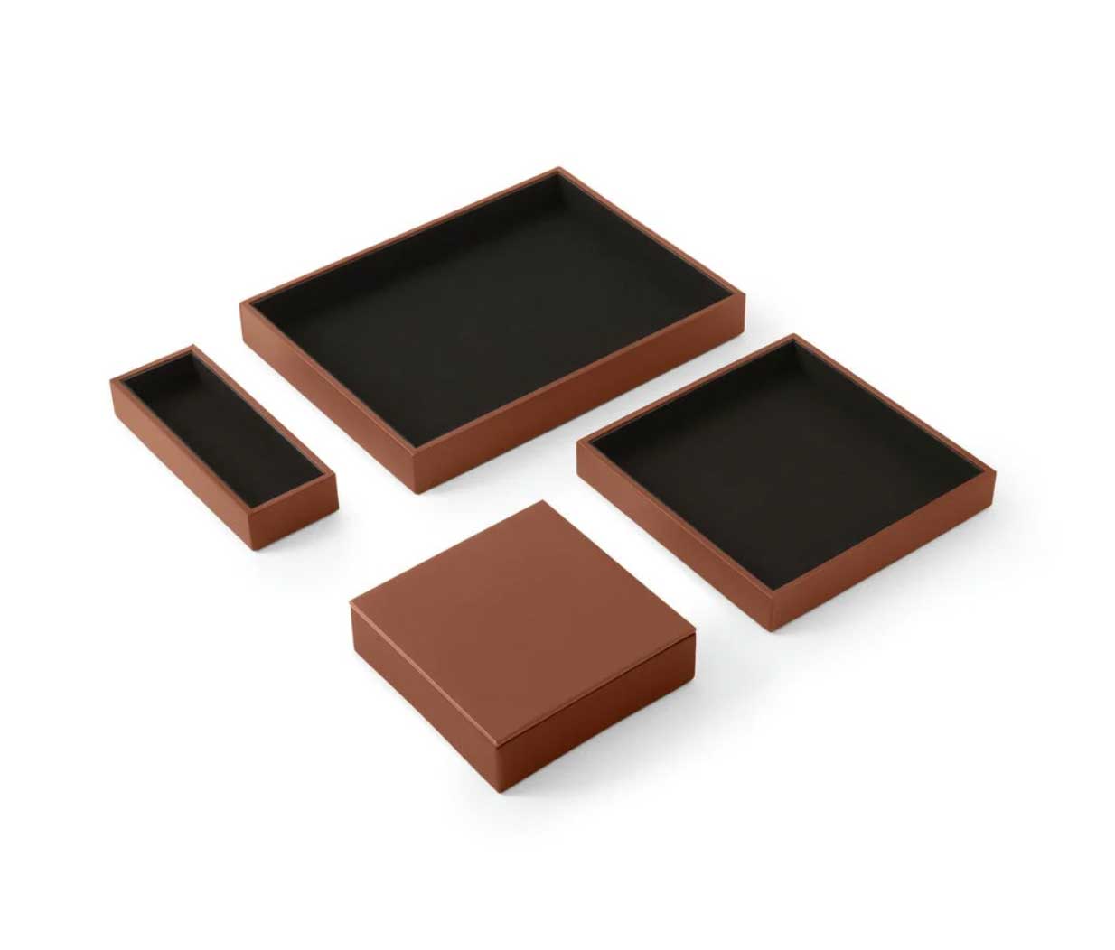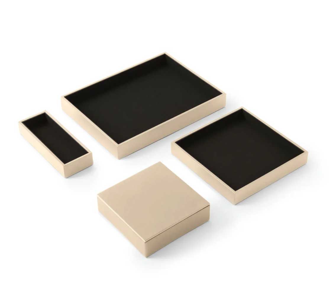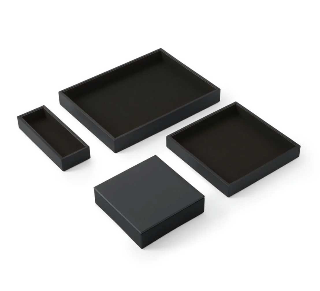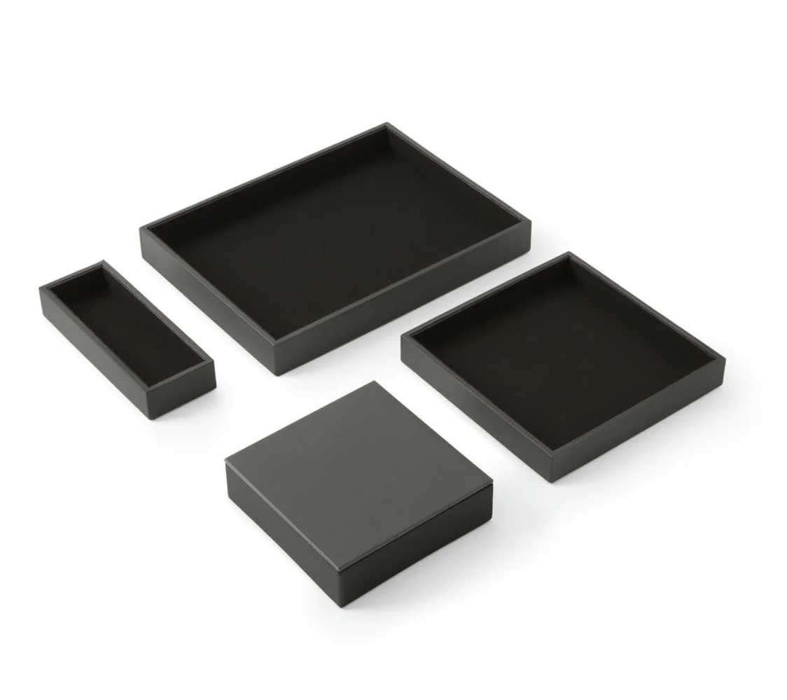 Le Set de bureau Minerva de la marque italienne Eglooh incarne le raffinement et la qualité artisanale à travers des accessoires conà§us pour allier esthétique et fonctionnalité. Idéal pour les environnements professionnels, ce set élégant s´impose comme un indispensable pour une organisation soignée et un décor sophistiqué. Entià¨rement fabriqué à la main en Italie, il est conà§u pour offrir une expérience visuelle et tactile inégalée. Un design carré et raffiné pour un bureau moderne Le Set de bureau Minerva comprend quatre pià¨ces essentielles : une boà®te à stylos, un plateau valet avec couvercle, un grand plateau valet et un plateau classique. Chaque élément de ce set présente des lignes épurées et une forme carrée qui confà¨rent une touche contemporaine à votre espace de travail. Que ce soit pour organiser votre bureau ou apporter une note de distinction à une table de réunion, ce set se distingue par son design intemporel et sa capacité à se fondre dans tous types d´environnement, des plus modernes aux plus traditionnels. Des matériaux de qualité supérieure pour une durabilité optimale Les matériaux utilisés pour la fabrication du Set Minerva sont à la hauteur de sa réputation. La surface externe est en cuir reconstitué, un matériau à la fois élégant et facile à entretenir, offrant une grande résistance à l´usure. Le cuir reconstitué est également connu pour sa texture agréable et sa capacité à maintenir un aspect neuf pendant longtemps, màªme en usage intensif. à€ l´intérieur, chaque pià¨ce est recouverte de microfibre douce, offrant une sensation agréable au toucher et protégeant vos objets de la poussià¨re et des rayures. La structure interne des accessoires est réalisée en matériau cellulosique, garantissant une solidité exceptionnelle et une longue durée de vie. Organisation optimale et praticité au quotidien Le Set de réception Minerva est pensé pour améliorer l´organisation de votre espace tout en préservant l´esthétique. La boà®te à stylos, mesurant 20 x 7,5 cm, est idéale pour ranger stylos, crayons et autres accessoires de bureau de manià¨re élégante. Le plateau valet avec couvercle (16,5 x 16,5 cm) se distingue par son couvercle pratique, permettant de conserver vos objets personnels en toute discrétion, comme une montre, des clés ou des bijoux, sans compromettre le style de votre bureau. Le grand plateau valet (21,5 x 21,5 cm) permet de ranger des accessoires plus volumineux, tels que des cà¢bles, des écouteurs, du maquillage ou des documents importants, tout en gardant l´espace bien ordonné. Enfin, le plateau classique (32 x 24,2 cm) est parfait pour organiser des objets plus larges comme des lunettes, des bouteilles d´eau, des tasses à café ou des snacks lors de réunions. Un accessoire de bureau polyvalent et chic Ce set Minerva ne se limite pas à l´organisation de bureaux, mais s´étend également à des espaces tels que les salles de réunion, les comptoirs de réception, les tables basses dans les salles d´attente, ou màªme les salons privés. Sur une table de réunion, il vous permettra de ranger vos fournitures tout en ajoutant une note de sophistication. En salle d´attente, il peut àªtre utilisé pour organiser magazines, journaux ou brochures. Le plateau valet est également idéal pour garder vos accessoires personnels en sécurité, et le grand plateau valet est parfait pour un usage polyvalent. Fabrication artisanale italienne : un gage de qualité Chaque pià¨ce du Set de bureau Minerva est fabriquée à la main avec un souci du détail propre à l´artisanat italien. L´entreprise Eglooh, forte de son expérience dans le travail du cuir, garantit une production soignée, de la coupe des matériaux à l´emballage final. Ce processus de fabrication artisanale assure une qualité inégalée et fait de chaque pià¨ce un véritable objet de luxe. En somme, le Set de bureau Minerva d’Eglooh est bien plus qu’un simple ensemble d’accessoires de bureau. C’est un investissement dans l’élégance, la durabilité et l’organisation de votre espace de travail. Avec ses matériaux de qualité, son design raffiné et son savoir-faire artisanal, il transforme tout bureau en un environnement à la fois fonctionnel et prestigieux