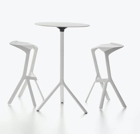 Miura Table haute ronde Diamà¨tre 80 cm rabattable Hpl Conà§ue par le célà¨bre designer Konstantin Grcic pour le compte de la marque italienne Plank, la petite table haute ronde Miura séduit d’emblée par son design épuré et esthétique. Trà¨s fonctionnelle avec un diamà¨tre de plateau de 80 cm et une hauteur de 109 cm, la petite table haute Miura s’avà¨re trà¨s fonctionnelle et peu encombrante Grà¢ce à son plateau rabattable trà¨s pratique. Le plateau de la petite table haute ronde Miura est réalisé en HPL résistant tandis que le pied est fabriqué en aluminium laqué. La petite table haute Miura de Plank, disponible en plusieurs couleurs convient aussi bien pour l’intérieur que l’extérieur. Vous pourrez intégrer la petite table haute Miura dans tous types d’espaces tels que cafétéria, espace détente, lieux de réunion informels ou terrasses.