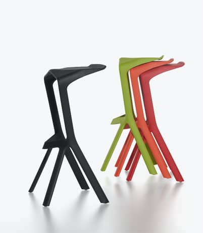 Miura Tabouret haut Le tabouret haut empilable Miura conà§u par le célà¨bre designer Konstantin Grcic pour la marque italienne Plank est fabriqué d’un seul bloc en polypropylà¨ne renforcé. Ce matériau facile d’entretien est 2,5 fois plus solide que l’aluminium. C’est ce qui a permis de donner au tabouret haut Miura sa forme saisissante, à la fois ergonomique et harmonieuse. Le tabouret haut Miura s’empile par 4 et peut aussi àªtre utilisé aussi bien à l’intérieur qu’à l’extérieur. Le designer allemand Konstantin Grcic a reà§u pour ce projet différents prix Design, la médaille d’or de l’iF Product Design Award, le Red Dot design award ou encore le 100% Design Blueprint Best Product Award 2005. Le tabouret haut Miura édités par le fabricant italien Plankest est disponible dans de nombreuses couleurs. Sa robustesse et son design épuré prédestinent le tabouret haut Miura de Plank à une utilisation dans les cafétérias, les espaces détente, les terrasses et les lieux de réunion informels.