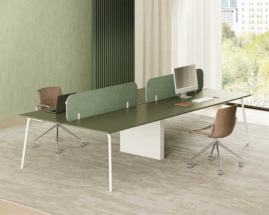 Le bureau bench Mod Round d’Archiutti est une solution de mobilier de bureau élégante et fonctionnelle, conà§ue pour s’adapter parfaitement aux espaces de travail modernes, qu´il s´agisse d´un open space ou d´un espace coworking. Avec sa conception modulable et sa finition soignée, le Mod Round offre une configuration flexible permettant d´accueillir 2, 4 ou 6 postes de travail en fonction des besoins de chaque entreprise. Fabriqué en Italie par Archiutti, un spécialiste reconnu du mobilier professionnel contemporain, le bureau bench Mod Round allie qualité et esthétisme pour répondre aux exigences d´un environnement de travail moderne. Chaque poste de travail est doté d´un plateau en mélaminé d’une épaisseur de 18 mm, avec des chants ABS arrondis de 2 mm pour une meilleure durabilité et un toucher agréable. Cette finition assure une robustesse et une résistance optimales, màªme dans les espaces de travail intensifs. Le Mod Round est également équipé d´un pià¨tement tubulaire en acier laqué, d’un diamà¨tre de 35 mm, garantissant une stabilité maximale. Les pieds du bureau sont munis de vérins réglables, permettant d´adapter la hauteur du bureau en fonction des préférences de chacun, assurant ainsi un confort de travail optimal. En matià¨re de gestion des cà¢bles, chaque plateau dispose de deux obturateurs passe-cà¢bles pratiques, offrant une solution discrà¨te et efficace pour organiser les cà¢bles informatiques et électriques. Une goulotte passe-cà¢bles horizontale est également intégrée, permettant de garder l´espace de travail propre et sans encombrement, idéal pour un environnement professionnel soigné. Les configurations multiples de ce bureau permettent de créer des espaces de travail doubles, triples, ou en face-à -face, selon les besoins de l’équipe. Ce bureau bench, proposé en configurations 2, 4 ou 6 places, est donc parfaitement adapté aux structures en expansion qui souhaitent optimiser leur espace tout en conservant une organisation de travail ergonomique. Pour une personnalisation accrue, il est possible d´ajouter des cloisons de séparation en option pour garantir une meilleure concentration et une certaine confidentialité à chaque utilisateur. Le Mod Round se distingue non seulement par son design sobre et moderne mais aussi par sa fonctionnalité, le rendant idéal pour équiper les bureaux open space et coworking. Avec son look contemporain et ses lignes épurées, il contribue à créer un environnement de travail stimulant et harmonieux, fidà¨le à l´élégance italienne d´Archiutti. Ce bureau bench Mod Round est la solution parfaite pour les entreprises en quàªte d´un mobilier à la fois pratique, design et modulable, qui répond aux besoins d´un bureau double, triple en face-à -face, dans une ambiance professionnelle et conviviale.