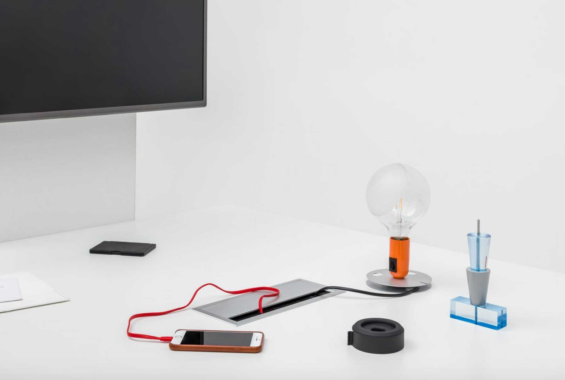 La couleur de la médiabox est assortie au plateau de travail.