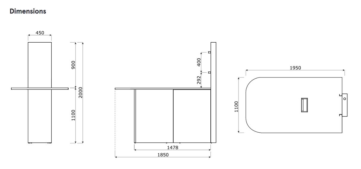Hauteur du plateau de travail 110 cm.