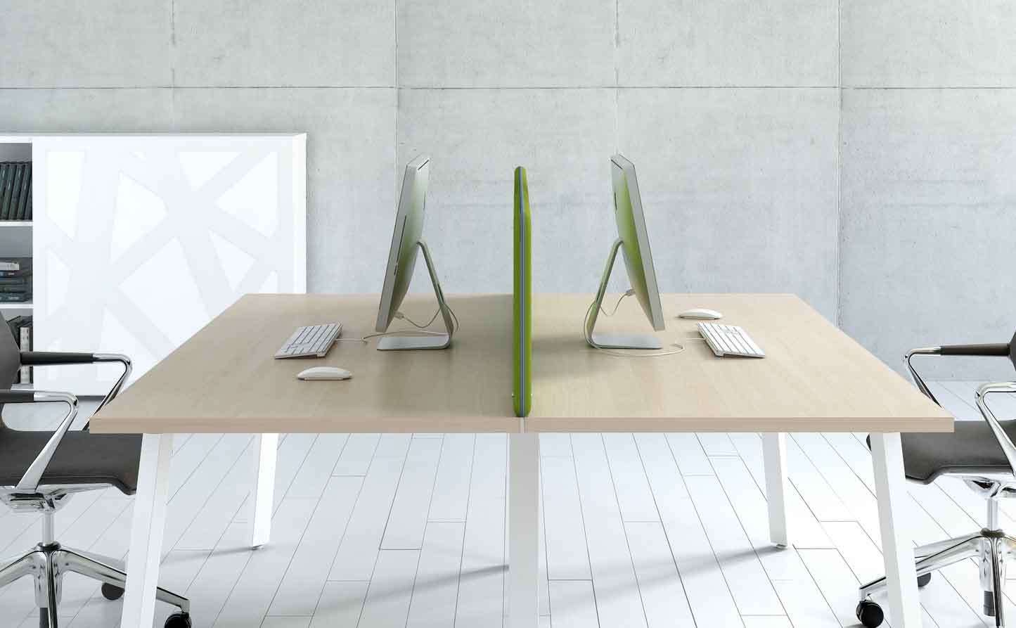 La collection de bureaux OGI de Mdd en version simple, bench ou réglable en hauteur conjugue avec succès design et ergonomie. Ogi en version bureau double ou bureau individuel se décline dans une grande variétés de pieds et de coloris.