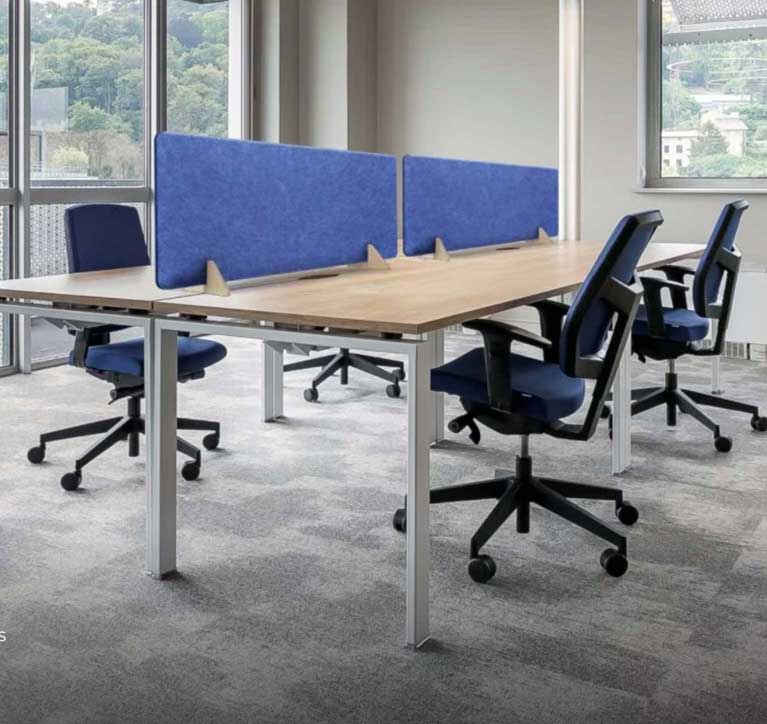 Oslo : Écran de séparation acoustique disponible en version sur pied ou à fixer, idéal pour structurer les open-spaces tout en réduisant les nuisances sonores.