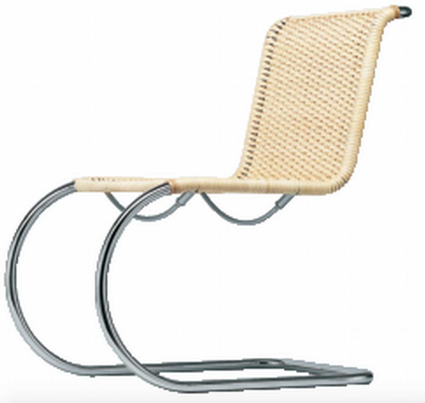 S 533 R Thonet Fauteuil à pià¨tement luge Mies van der Rohe avec cannage Un grand classique design signé du célà¨bre architecte et design Ludwig Mies van der Rohe. La chaise fut présentée pour la premià¨re fois en 1927 dans la cité WeiàŸenhof. Fabriqué par la fameuse maison allemande Thonet, la chaise S 533 R est un modà¨le de design qui associe la pureté des lignes et un confort extràªme. à‰conomie dans l’emploi des matériaux, élégance des lignes, transparence du style : voici les principales caractéristiques de la chaise design S 533. L’effet ressort permanent obtenu par la large courbure en arc de la partie avant en acier tubulaire du pià¨tement rend cette chaise design trà¨s confortable. Si, dans les années 1920, la plupart des créations étaient sobres et fonctionnelles, on reconnaà®t bien ici la griffe de l’architecte Mies van Der Rohe en quàªte d’une esthétique intemporelle, alliée à une grande fonctionnalité et à un confort exceptionnel. La chaise design S R33 à pià¨tement luge chromé est sans accoudoirs.