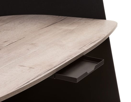 Ce bureau mobile séduit par ses lignes élégantes et modernes qui s’harmonisent parfaitement avec tous les environnements professionnels. Les matériaux premium sélectionnés – plateau mélaminé et structure acier laqué avec résille opaque – créent une ambiance cosy tout en garantissant durabilité et raffinement.