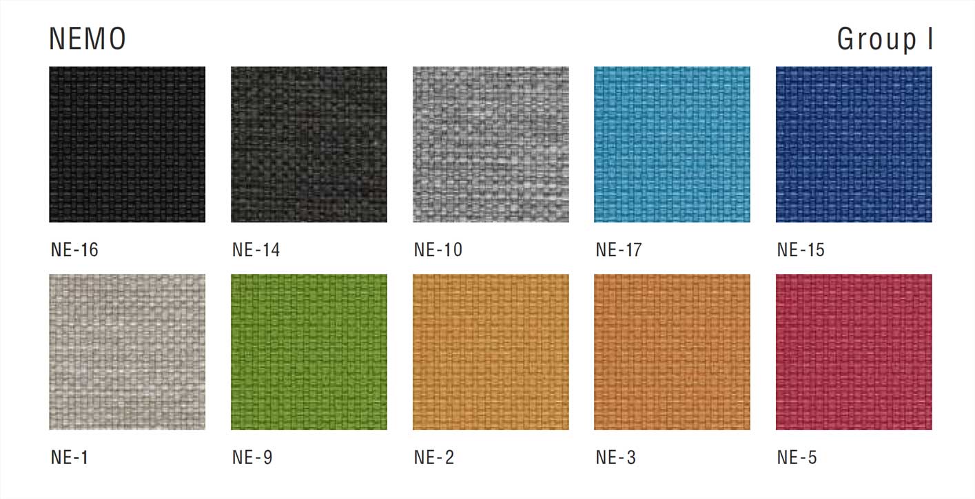 NE-1 Beige, NE-10 Gris, NE-14 Anthracite, NE-15 Bleu marine, NE-16 Noir, NE-17 Bleu, NE-2 Jaune orange, NE-3 Orange, NE-5 Rouge, NE-9 Vert