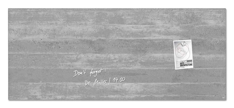 Vision Tableau en verre magnétique 130 x 55 cm Béton Les tableaux en verre magnétiques Vision présentent de nombreux atouts. Outre leur aspect trà¨s esthétique, les tableaux en verre Vision disposent d’une surface d’écriture effaà§able facile d’entretien, d’un affichage magnétique à l’aide d’aimants puissants et bénéficient d’un haut niveau de sécurité Grà¢ce au verre trempé de sécurité. Le design sobre et épuré des tableaux en verre magnétiques Vision leur permet de s’intégrer aisément dans tous types de pià¨ces tels qu’un accueil, un bureau, une salle de réunion, une salle de formation ou un salon. Outil efficace d’organisation, de présentation ou d’information les tableaux en verre magnétiques Vision vous apporteront une aide efficace au quotidien. A la fois objet mural décoratif et tableau de présentation polyvalent et multifonction, les tableaux en verre magnétiques Vision sont disponibles dans de nombreux formats et coloris.