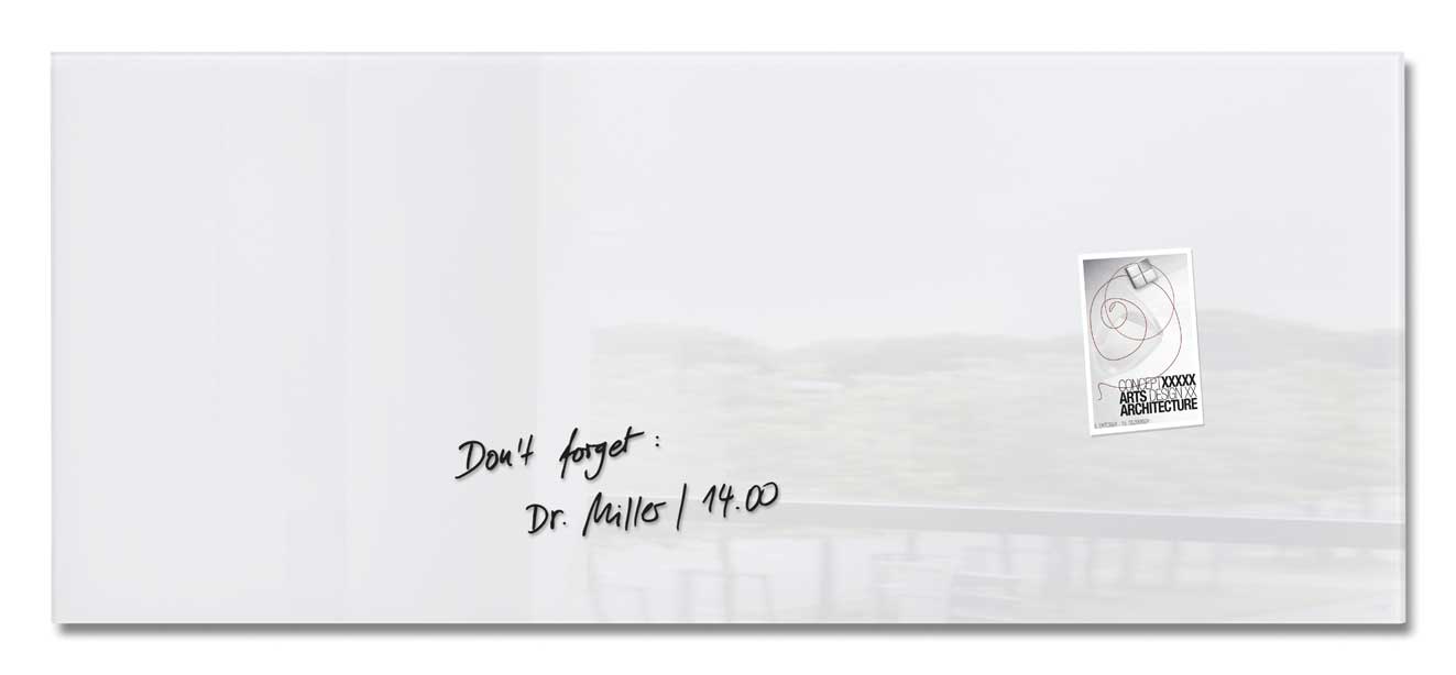 Vision Tableau en verre magnétique 130 x 55 cm Blanc Les tableaux en verre magnétiques Vision présentent de nombreux atouts. Outre leur aspect trà¨s esthétique, les tableaux en verre Vision disposent d’une surface d’écriture effaà§able facile d’entretien, d’un affichage magnétique à l’aide d’aimants puissants et bénéficient d’un haut niveau de sécurité Grà¢ce au verre trempé de sécurité. Le design sobre et épuré des tableaux en verre magnétiques Vision leur permet de s’intégrer aisément dans tous types de pià¨ces tels qu’un accueil, un bureau, une salle de réunion, une salle de formation ou un salon. Outil efficace d’organisation, de présentation ou d’information les tableaux en verre magnétiques Vision vous apporteront une aide efficace au quotidien. A la fois objet mural décoratif et tableau de présentation polyvalent et multifonction, les tableaux en verre magnétiques Vision sont disponibles dans de nombreux formats et coloris.