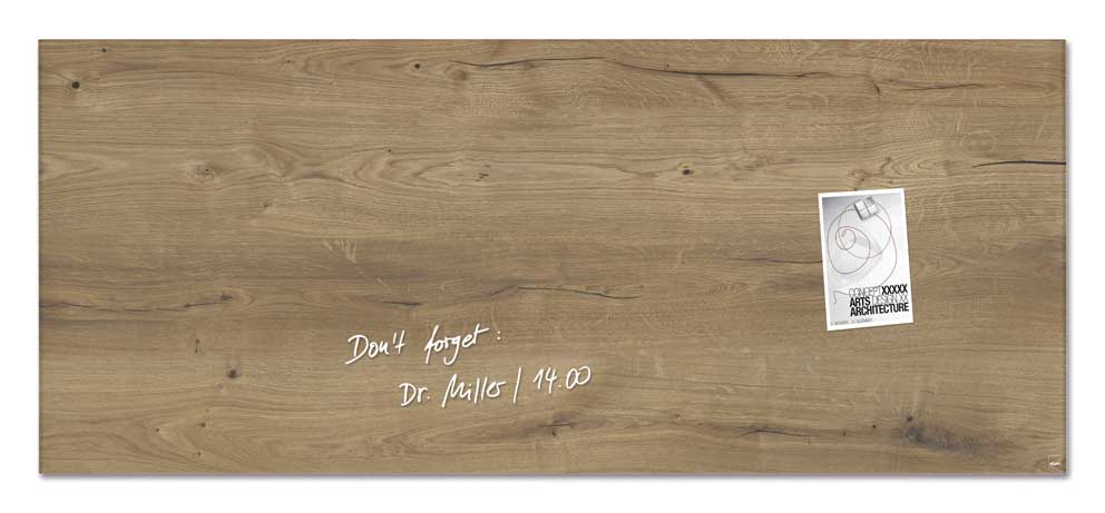 Vision Tableau en verre magnétique 130 x 55 cm Bois naturel Les tableaux en verre magnétiques Vision présentent de nombreux atouts. Outre leur aspect trà¨s esthétique, les tableaux en verre Vision disposent d’une surface d’écriture effaà§able facile d’entretien, d’un affichage magnétique à l’aide d’aimants puissants et bénéficient d’un haut niveau de sécurité Grà¢ce au verre trempé de sécurité. Le design sobre et épuré des tableaux en verre magnétiques Vision leur permet de s’intégrer aisément dans tous types de pià¨ces tels qu’un accueil, un bureau, une salle de réunion, une salle de formation ou un salon. Outil efficace d’organisation, de présentation ou d’information les tableaux en verre magnétiques Vision vous apporteront une aide efficace au quotidien. A la fois objet mural décoratif et tableau de présentation polyvalent et multifonction, les tableaux en verre magnétiques Vision sont disponibles dans de nombreux formats et coloris.