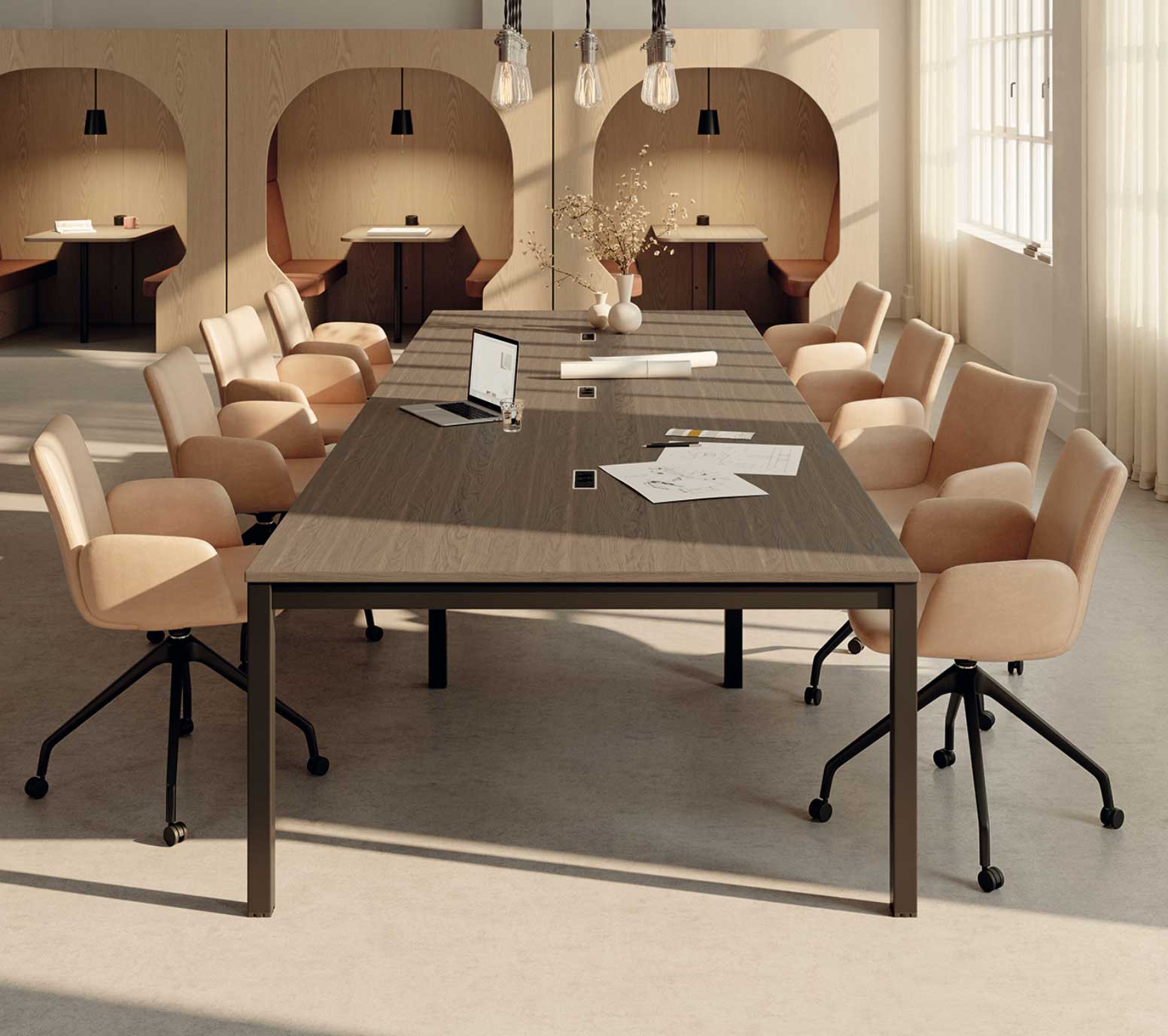 Propice à la détente et aux échanges, Harmony Group vous accompagne également dans l’aménagement des espaces informels grâce à sa vaste collection de cabines ou alcôves acoustiques entièrement équipées (banquette en tissu, table de travail, système d’électrification, luminaire …).